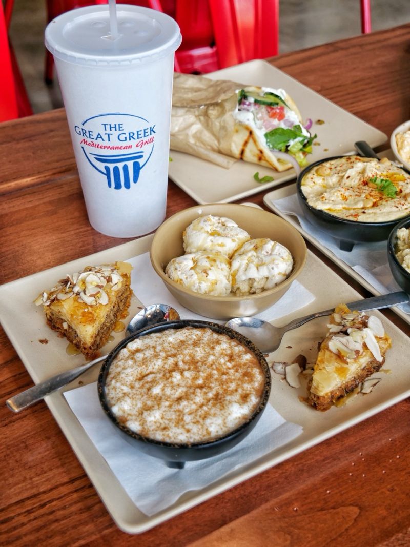 When it comes to mains, the Great Greek Gyro is the star of the show. The gyro meat was perfectly seasoned and tender, with a flavor that hits! It’s what they’re known for, and rightfully so. We also loved the Falafel Pita for a solid vegetarian option, and the Feta Fries made the perfect side—crispy, salty, and loaded with crumbled feta. We couldn’t leave without trying dessert, and the Baklava Ice Cream was the ideal sweet finish.