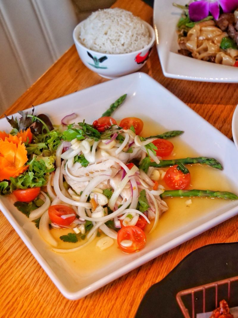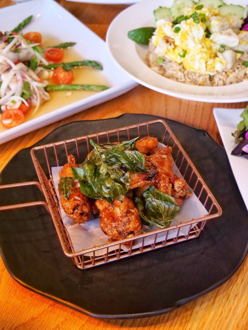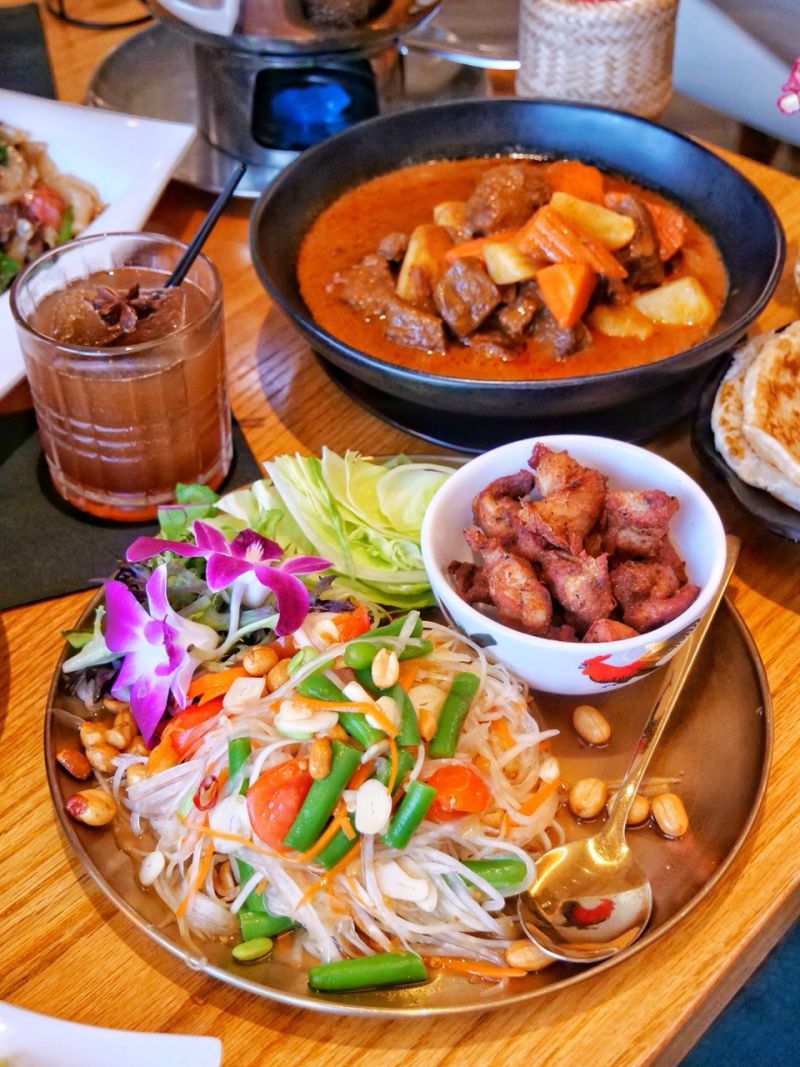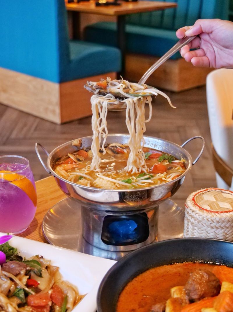 Food-wise, the Thai Delight Wings, topped with fried basil are a must. Crispy, flavorful, and drizzled with a completely addictive sauce. The Massaman Beef Curry brought a deep, smoky richness that had us scraping the bowl, and the Tom Yum Talay hotpot was packed with seafood and that signature Thai tang that seafood lovers will appreciate.