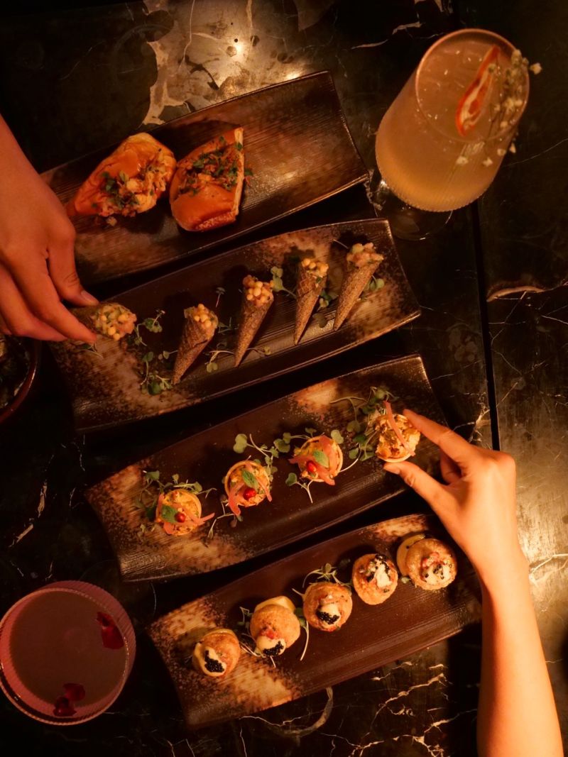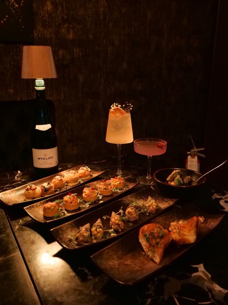 Once you find your way past the bookshelf, the vibe shifts. Inside the speakeasy, think dark wood, warm lighting, and a curated menu of international cocktails and small bites. The food and drink menus pull from global influences, and there’s enough variety to keep things interesting without overwhelming you with options.