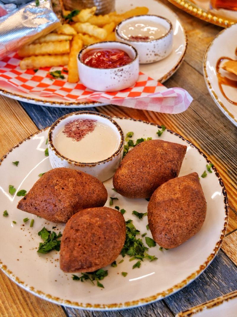 Two dishes that absolutely deserve a spotlight: the Fried Kibbeh and the Falafel. Crisp on the outside and perfectly moist inside, both are must-orders. For dessert, you’re going to want the Kunafa. The cheese pull is unreal, and it tastes just as good as it looks—sweet, crispy, melty, and totally worth the photo. They also serve the viral Dubai Chocolate!