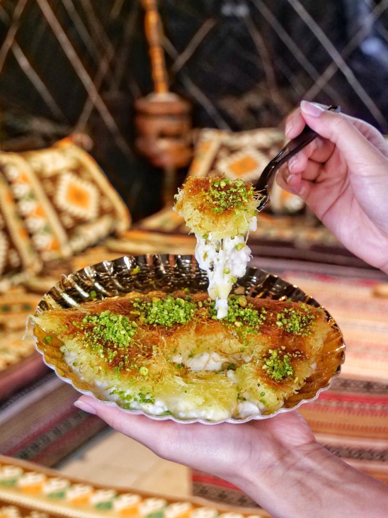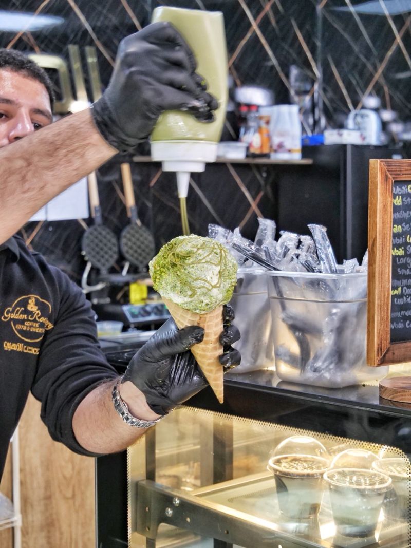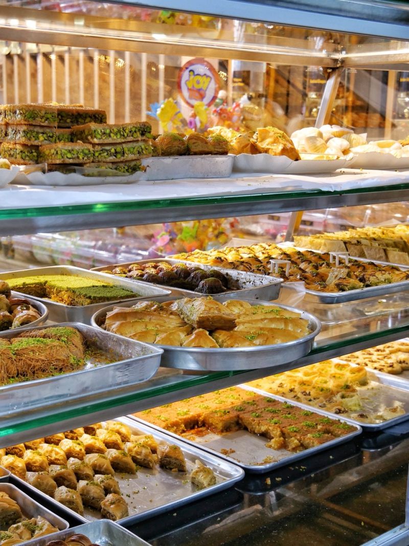 We had a blast sampling our way through the menu. The Dubai chocolate crepes were warm, decadent, and a sweet tooth’s dream. The pistachio ice cream was a standout—creamy, nutty, and prepared right in front of you! For something a little extra? The egg waffle and pistachio cold brew were so delicious. And of course, you can’t leave without trying their Kanafa. Served warm and gooey with just the right balance of cheese and syrup! It may have been our favorite of the bunch.