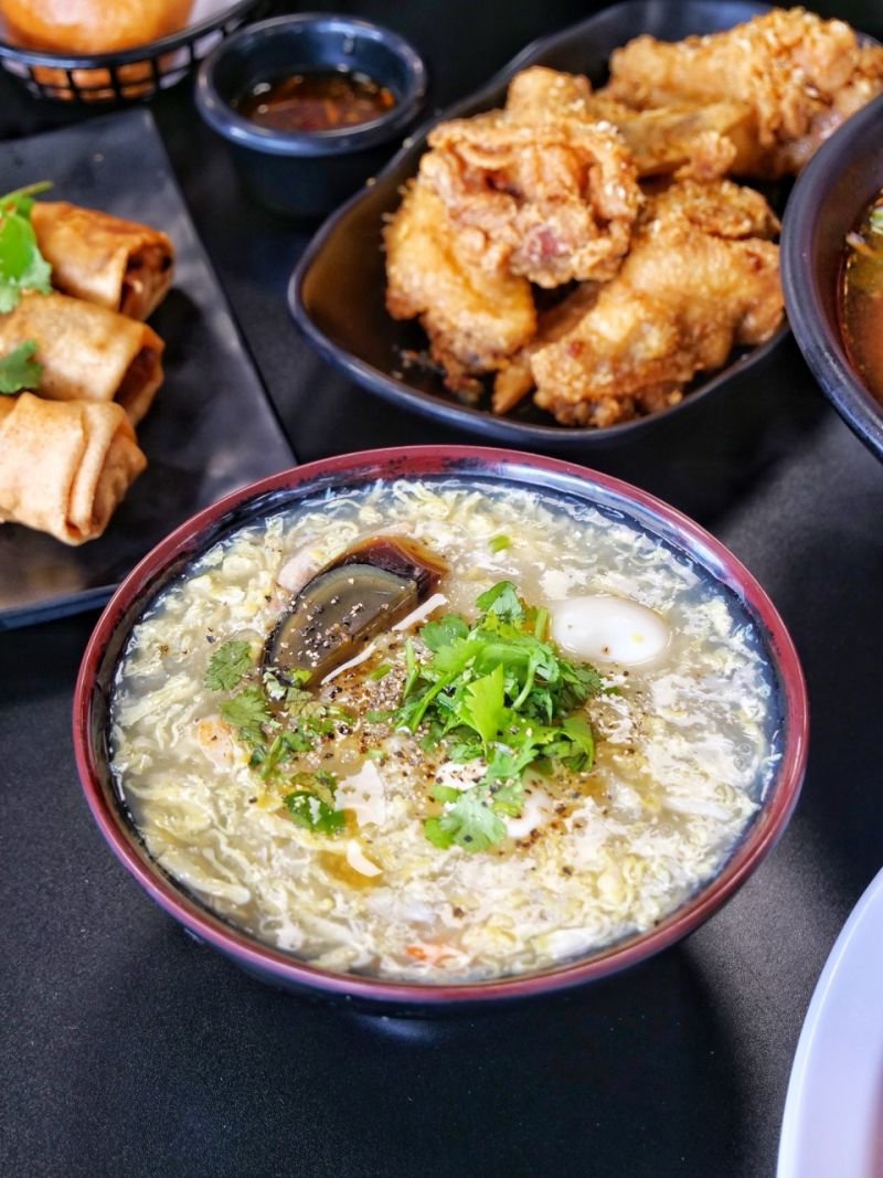 We couldn’t get enough of the Bánh Mì Thịt Nướng—grilled pork stuffed into a baguette with fresh herbs, pickled veggies, and spreads. The Chả Giò (pork and shrimp egg rolls) came out hot and crispy, a classic served with fish sauce. The Cánh Gà Chiên Nước Mắm (fish sauce chicken wings) had that addictive sticky, sweet, and umami-rich glaze. But the real standout? The Súp Cua—a thick, flavorful crab and egg drop soup, taken up a notch with the addition of a century egg for extra depth.