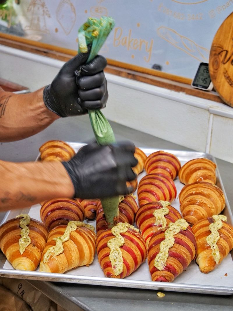 But it doesn’t stop there. David also blends international flavors into his menu, like the Dubai Chocolate Croissant, which is indulgent, airy, and layered with rich chocolate. They also bake pizza to order, and their paninis make for an easy but satisfying lunch option.