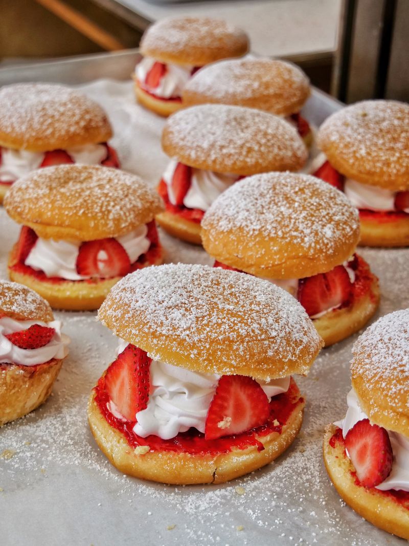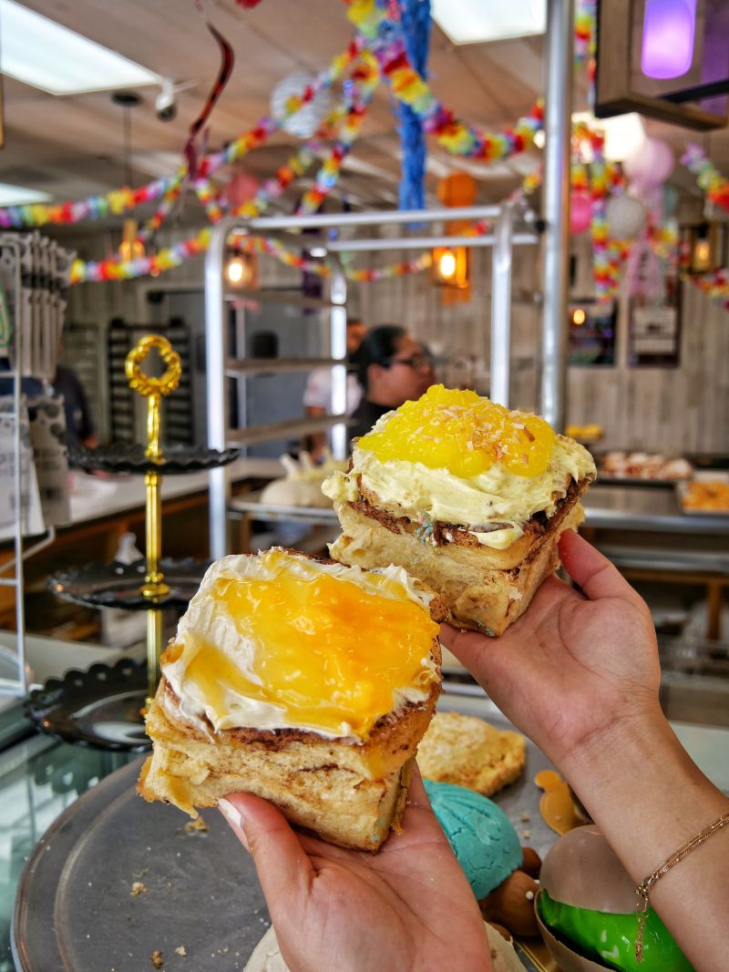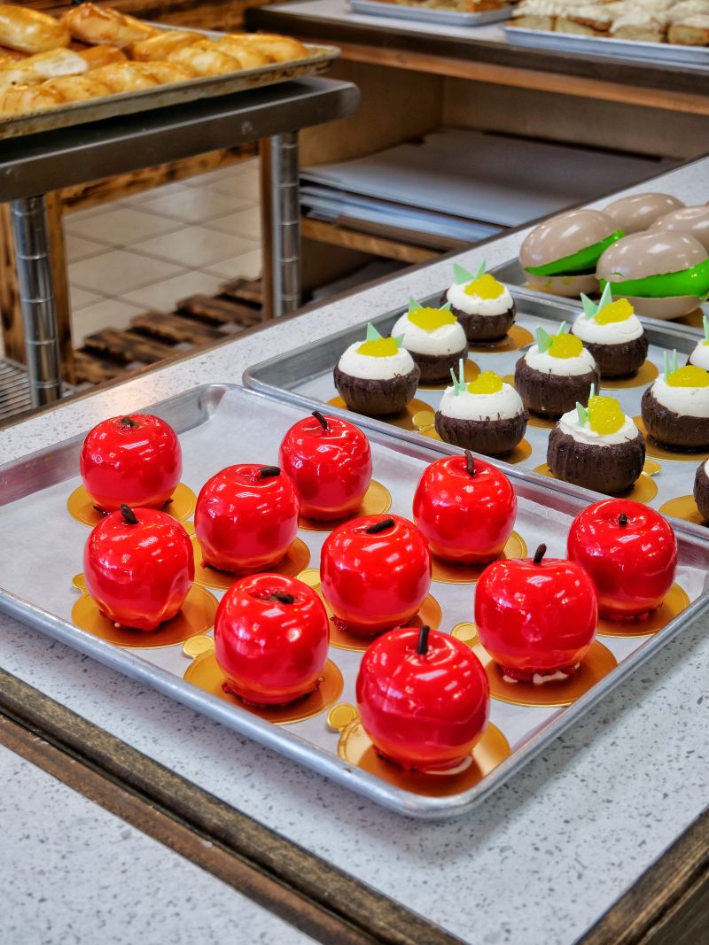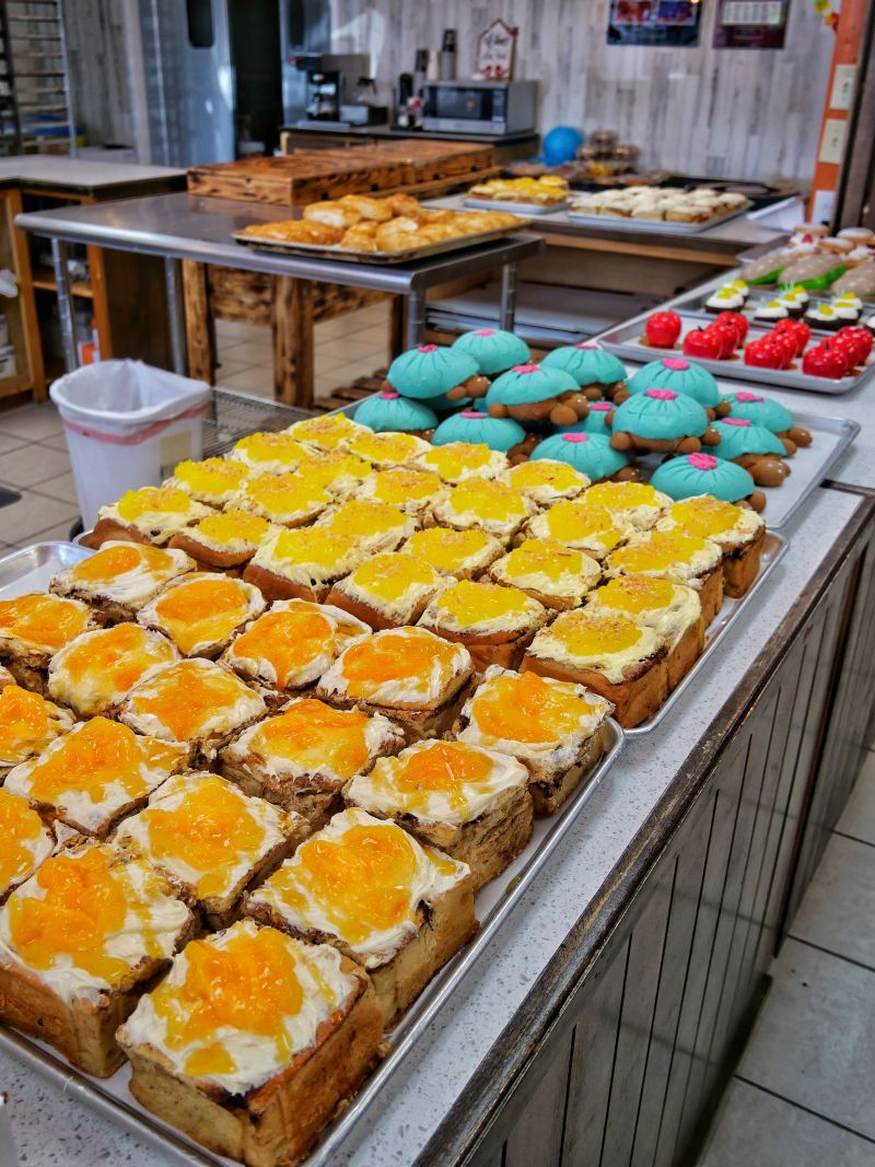 August’s menu was all about tropical inspiration, featuring turtle-shaped guava conchas, coconut-filled conchas, banana pan dulce, peach and cinnamon rolls, and piña colada empanadas. Every pastry looks almost too good to eat—almost. The bakery also experiments with new creations often, like their take on the viral fruit mousse cakes, which have come in flavors such as pistachio, coconut, and apple.