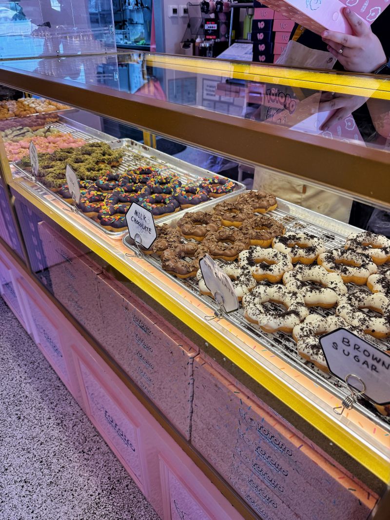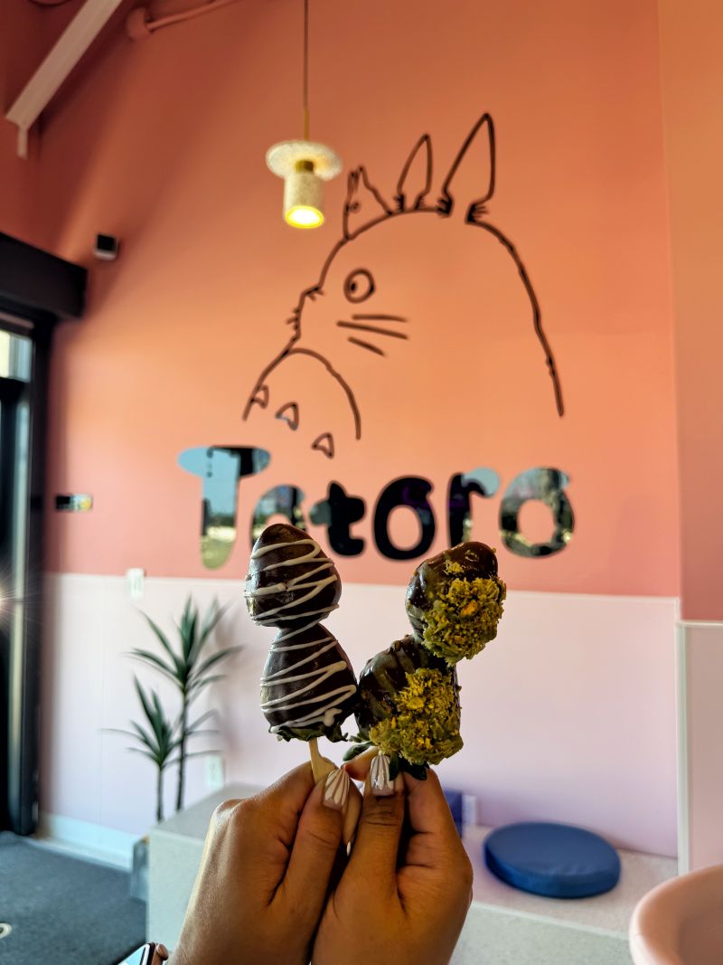 If you’re a fan of cute cafés and Studio Ghibli vibes, you have to check out Totoro Mochi Donut! There are a few locations around Houston, but we stopped by the Baybrook location while we were in the area. From the moment you walk in, it feels like stepping into a whimsical little world of soft pastel tones, playful Totoro decor, and photo ops at every corner.