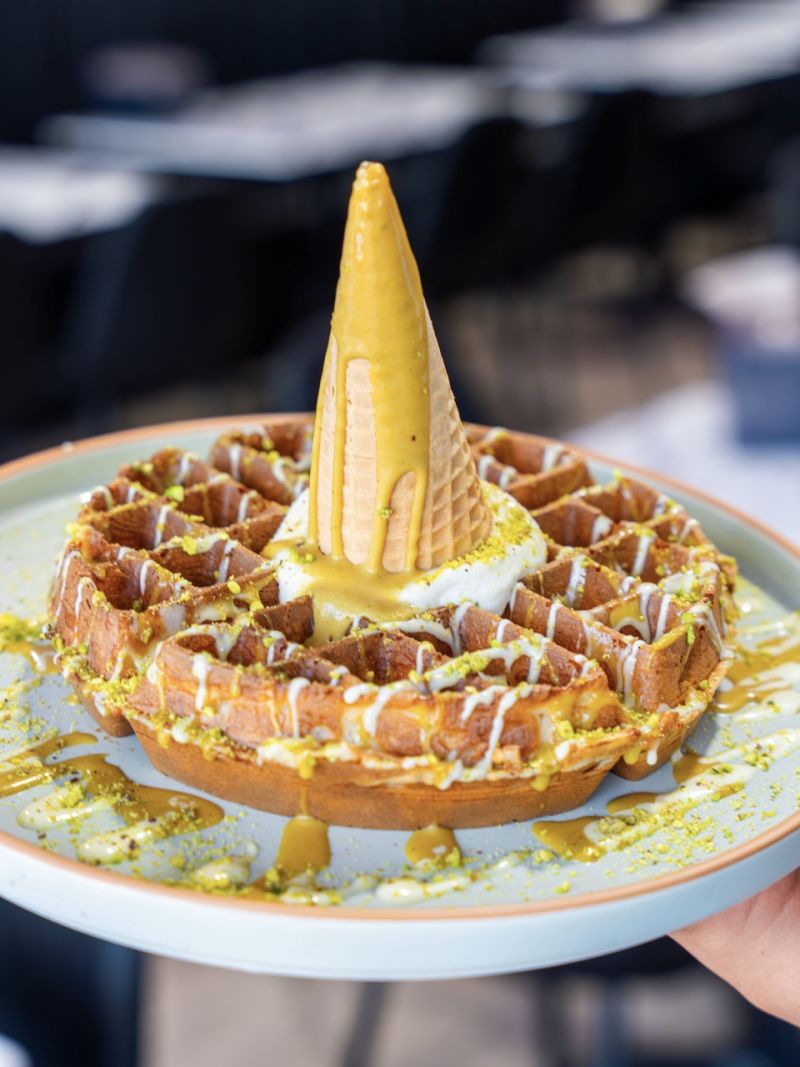 If you’re stopping by for the first time, a few standouts on the menu include the S’mores Waffle, which is every bit as gooey and indulgent as it sounds, and the Pistachio Waffle, which is a flavor we can’t say no to.