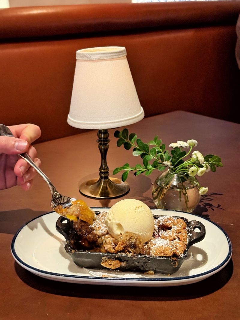 The surprise favorite of the night was a daily special: Eggs + Chorizo. It brought comfort, heat, and just the right balance of richness and spice. We ended the night with their spiced peach cobbler, which is one of the best we’ve ever had– seriously, don’t leave without trying it!