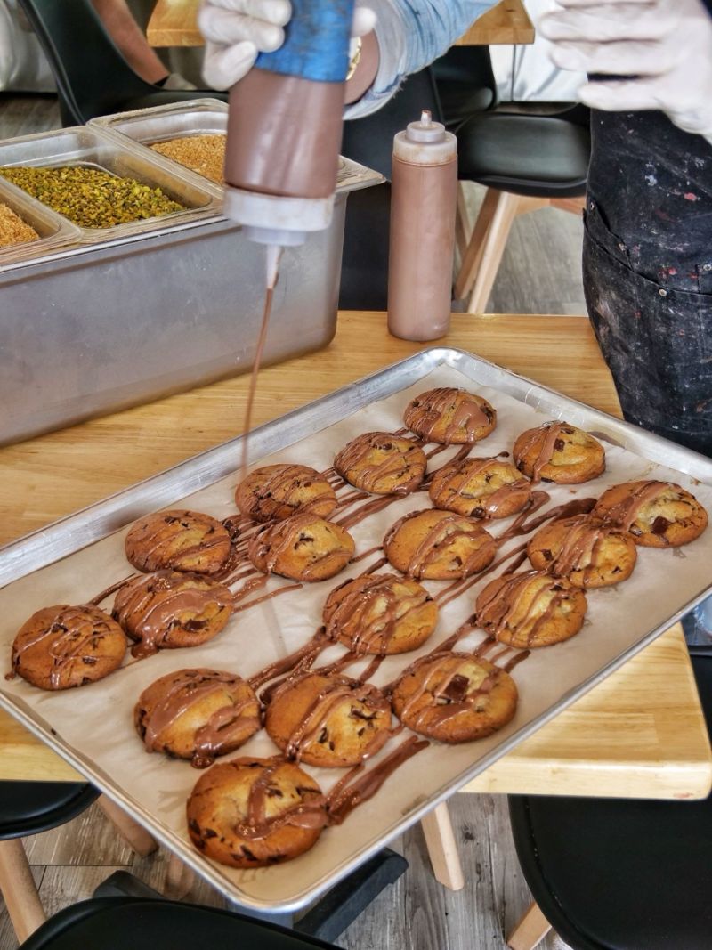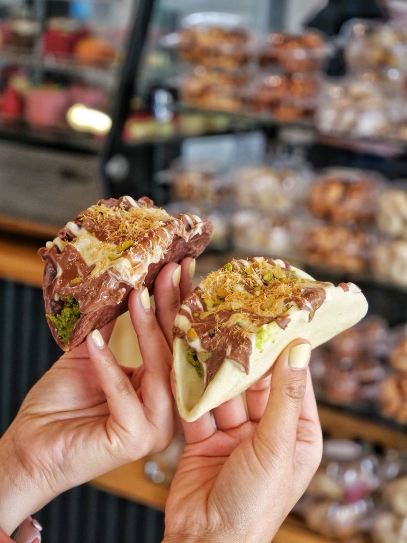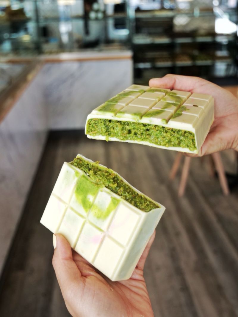 While we came for the viral fruit desserts, we stayed for all of their other craveworthy treats. The 14-layer hand-rolled baklava was an instant favorite—flaky, buttery, and filled with rich pistachio that Suzie’s team grinds in-house using a stone grinder. That same 100% pure pistachio shows up in several other pastries, and it makes all the difference. And don’t sleep on their Dubai chocolate collection, made with high-quality Callebaut chocolate for a smooth, rich taste that’s balanced and hard to find elsewhere.