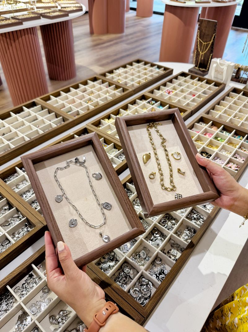 If you love jewelry that’s both stylish and affordable, you’re going to want to add Ayna Jewels to your must-visit list. This charming, family-owned shop—run by a mother and her two daughters—instantly had us swooning the moment we walked in. From dainty gold-plated rings and sterling silver necklaces to bold cuffs and custom charms, every corner of the store shines (literally).