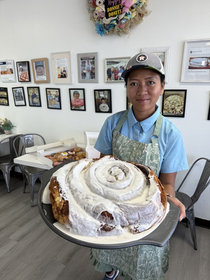 Everything really is bigger in Texas—especially at Bonnie’s Donuts in League City. This local bakery has gone viral for its massive 5-pound cinnamon roll priced at $24.99, and for those who like an even bigger challenge, they also make a 10-pound version for $48.99. It’s part spectacle, part indulgence, and completely worth the trip.